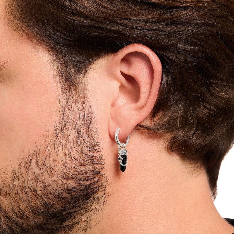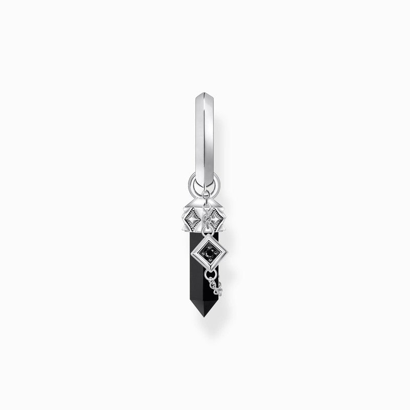 Thomas Sabo Earring - Single Hoop - Onyx Pendant - Blackened SilverThomas Sabo Earring - Single Hoop - Onyx Pendant - Blackened Silver