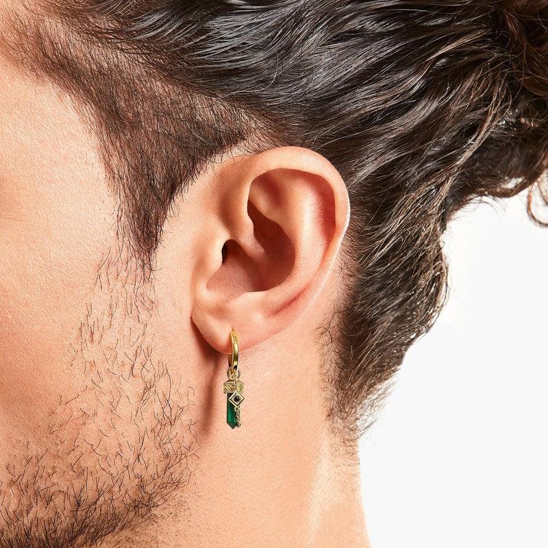 Thomas Sabo Gold-plated Single Hoop Earring with Green Tiger's Eye PendantThomas Sabo Gold-plated Single Hoop Earring with Green Tiger's Eye Pendant