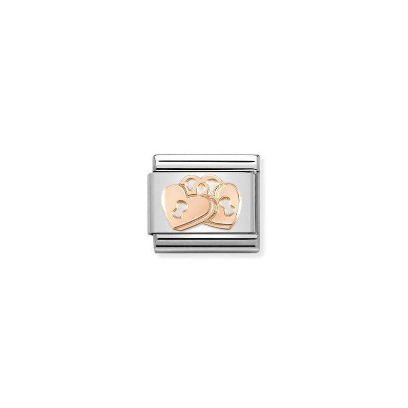 Nomination Composable Link Double Hearts, 9K Rose Gold