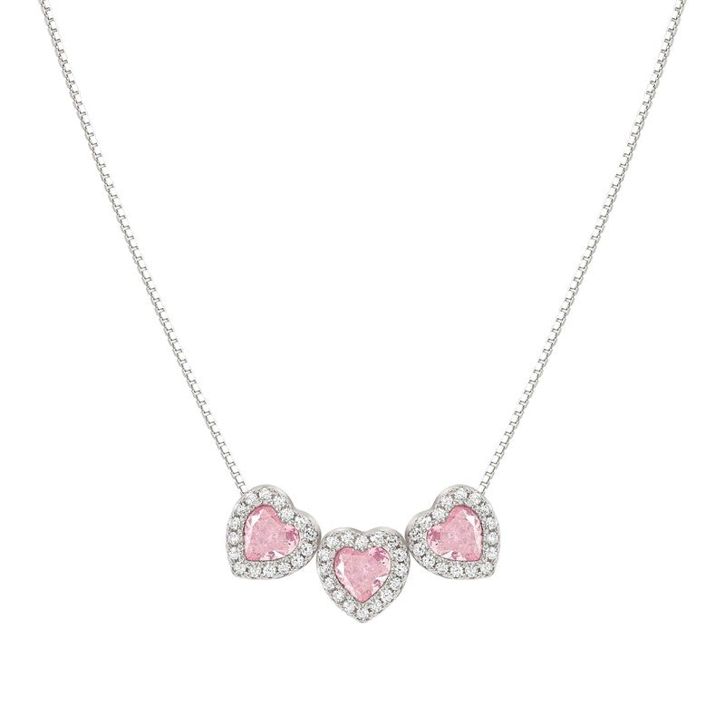 Nomination All My Love Necklace, Triple Heart, Pink Cubic Zirconia , Silver