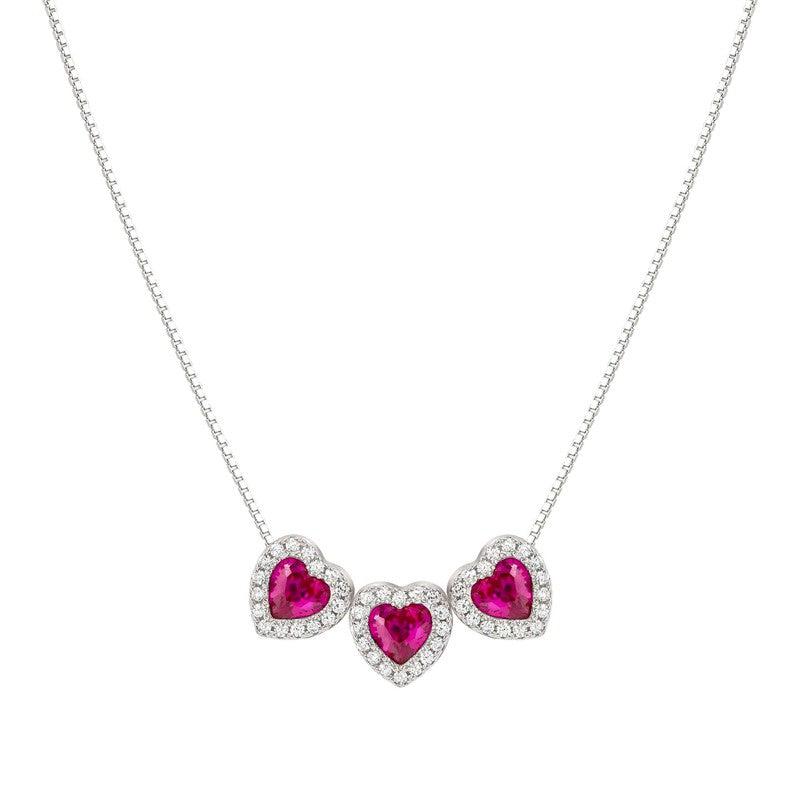 Nomination All My Love Necklace, Triple Heart, Red Cubic Zirconia , Silver